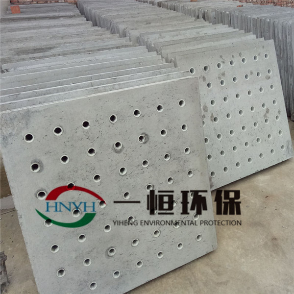 水泥濾板采用平板鋼模澆制。濾板為鋼筋混凝土濾板,由耐酸、耐腐蝕及能承受壓力的鋼筋混凝土材質(zhì)制作,水泥標(biāo)號(hào)采用425#普通硅酸鹽水泥,其抗壓強(qiáng)度>42.5Mpa,抗拉強(qiáng)度>6.4.Mpa,初凝時(shí)間大于20分鐘,終凝時(shí)間小于10小時(shí)。碎石采用公稱粒徑5-25mm,針征狀含量≤15%,含泥量≤1%,砂采用天然石英砂。濾板嚴(yán)格執(zhí)行有關(guān)標(biāo)準(zhǔn),按設(shè)計(jì)要求計(jì)算開孔比,預(yù)埋ABS工程塑料預(yù)埋套管、配雙層雙向優(yōu)質(zhì)螺紋鋼筋,高標(biāo)號(hào)水泥、標(biāo)準(zhǔn)細(xì)石和石英砂,經(jīng)機(jī)械攪拌,搗實(shí)澆制而成。
